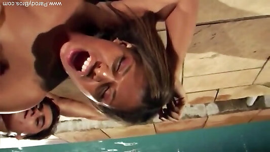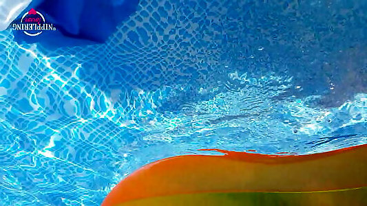 nippleringlover & ndash; couguar fou bronzant nu dans la piscine clignotant des anneaux charnus dans les lèvres de chatte percées et les tétons percés