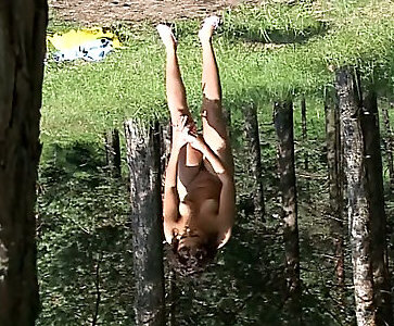 selina à peine légale se déshabille dans un jardin et montre ses nichons
