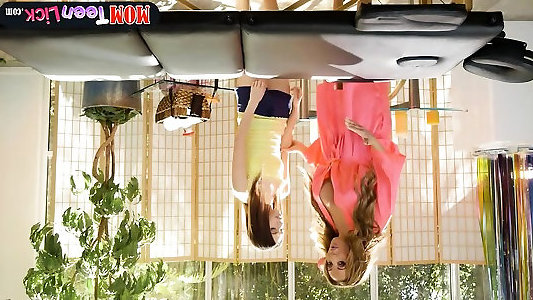 la belle-mère avec des melons géants agenouille sa adolescent fille