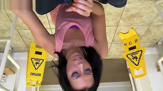 adorable brune avec des cruches super mignonnes gorge profonde et prend une bite