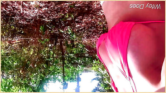 wifey étonne les étrangers avec un flash de bikini rose chaud