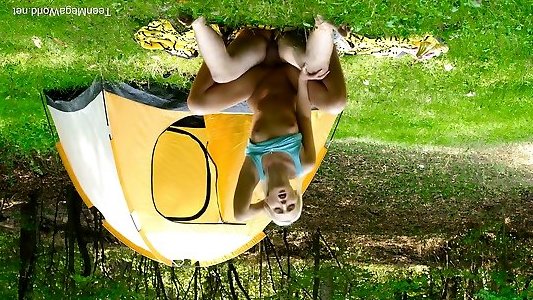 incroyable fille de camping aux cheveux clairs lovita destin rails homme saucisse de gaffer à lextérieur