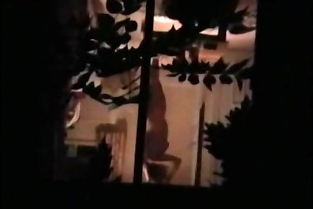 une énorme blondinette nue se prend en main en se faisant filmer par la fenêtre de son palais