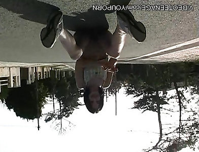 merveilleux first-timer flasher beaus de plein air strip-tease et hidden cam exhibition de lhiver nu dévoilement de la vulve et de boules ou