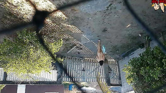 latina babe est nue à lextérieur, enfermée à lintérieur