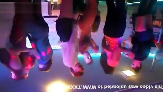 les étudiantes non emballées dansent sur la table et continuent avec boink