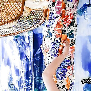 une jolie femme au foyer samuse sans culotte sur les vagues du clochard et montre son manchon impeccable 1