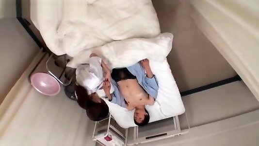 infirmière chaude japonaise aux gros seins naturels et aux gros culs taquinant la patiente à grosse bite pour lui baiser la chatte humide