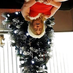 horny babe donnant un bj tout en portant une tenue de père noël