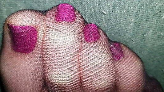 nn - incroyable branlette avec les pieds en nylons cramoisis