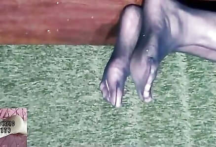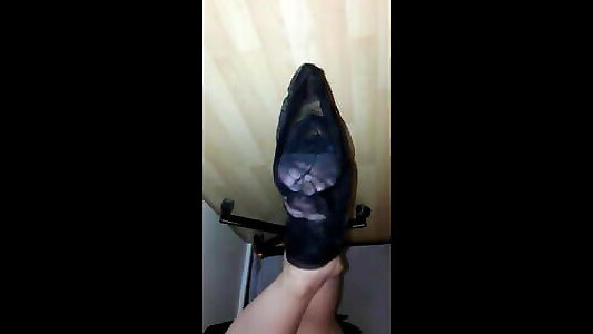 branlette avec les pieds en nylon. branler sa bite avec mes pieds en bas noirs