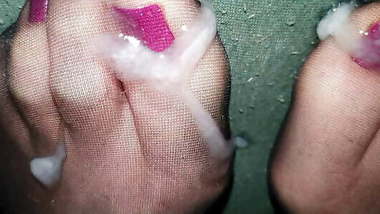 nylon poke pied branlette et branlette jizm sur les pieds en nylon