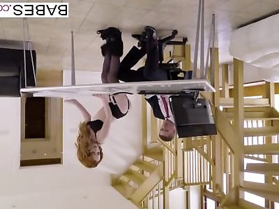 2 cascadeurs font le branchement lesbien dans le bureau