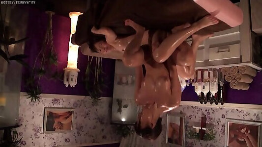 une salope asiatique toute huilée qui se fait peloter par quelques masseurs super sexy