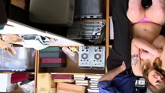 le visage aux cheveux noirs à gros seins baisé par un officier plus âgé pour vol à létalage