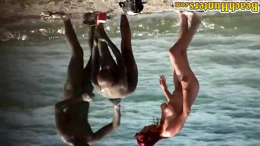 nymphe aux cheveux roux photographiant des gens nus sur le rivage