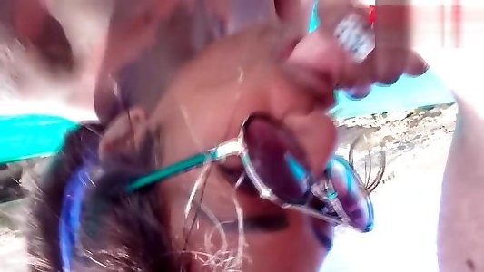 une nana espiègle à gorge profonde sur un bateau, tandis que dautres peuvent lobserver et étirer son butin dans la mer salée