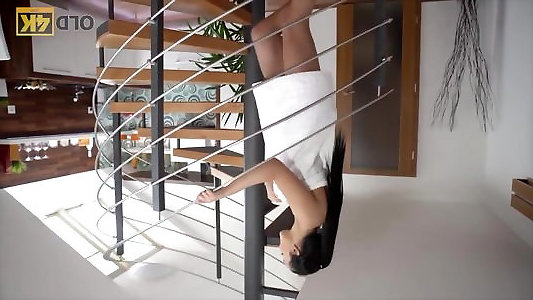 patron baise une assistante anale en bas et pantoufles à talons hauts et éjacule vers lintérieur