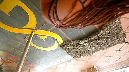 une pute en ligne du butin du ghetto prend une bite de fierté arc-en-ciel baise depuis une machine à sexe