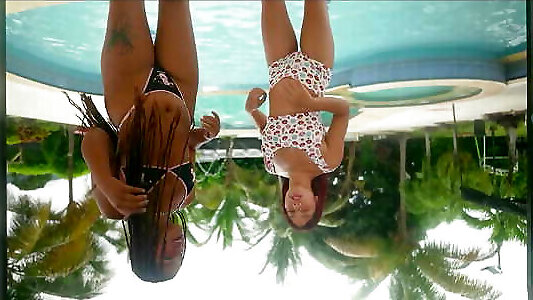 une blonde aux gros seins bien roulée déshabille son bikini et se fait pilonner hardcore en levrette live