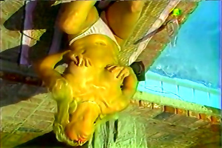 deux nymphes super chaudes ont un 3some en plein air près de la piscine