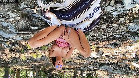 vidéo en extérieur dun ange excité jouant avec un vibromasseur et des doigts
