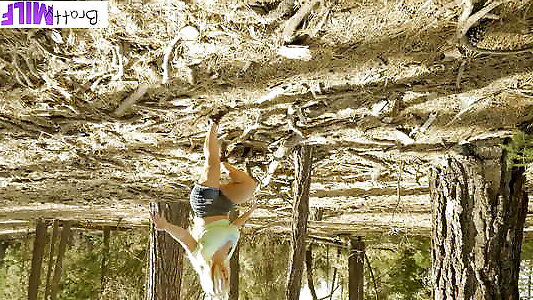 fellation romantique et sexe dans la forêt avec un couguar bronzé aux gros seins