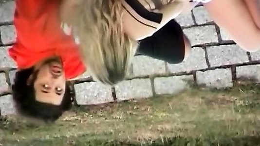 une charrue anale en plein air répand le trou rose sur cette adolescent houe blonde aux gros seins
