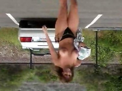 baise en plein air sur le capot de la voiture avec double pénétration pour adolescent brune