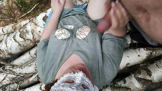 une blonde se fait baiser dans les bois et se fait éjaculer sur toute sa jupe !