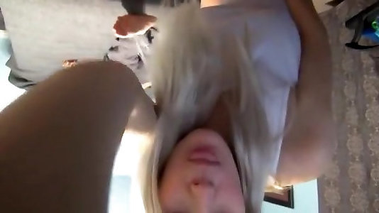 poupée allemande blondie avec des orbes costauds jongle avec eux en haut et en bas, alors quelle chevauche linterrupteur en os de son bf cowgirl côtés sur le canapé