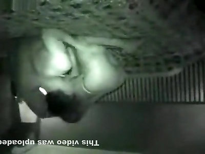 femme ash-blonde avec une bonne croupe a soixante-neuf et cowgirl bosse sur le lit dans la vision de la nuit