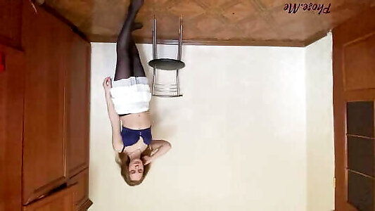 samantha aux cheveux roux en nylon en collant fétichisme bang