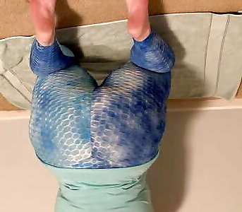 amb3erlynn a désespérément besoin de faire pipi dans ses leggings bleus serrés
