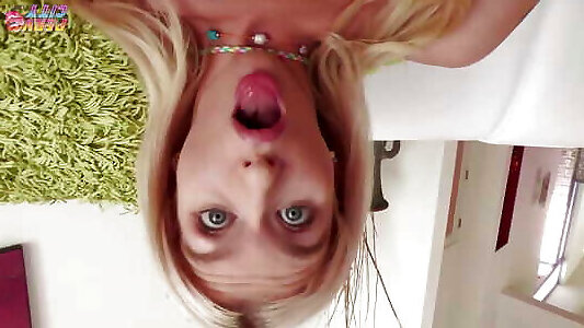 petite demi-soeur blonde aux mini seins pour la première fois baisée par une grosse bite après avoir été attrapée