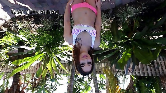 petite femme en bikini riley reid se fait étirer la chatte au bord de la piscine