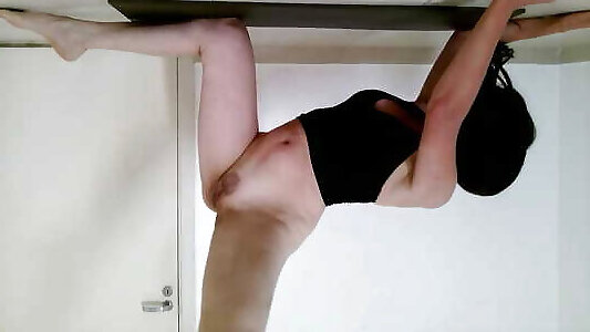 miss brésilienne faisant du yoga en train de pisser sur un pantalon brillant en latex