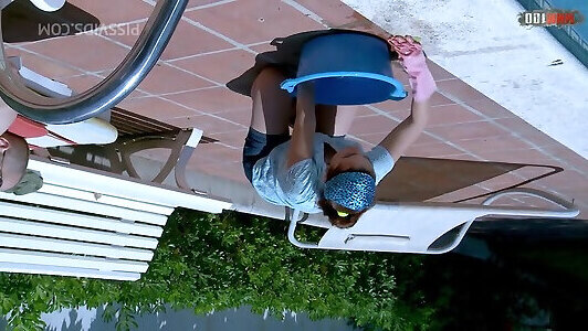 susan ayn en pyjama pisse pipi partout dans le jardin