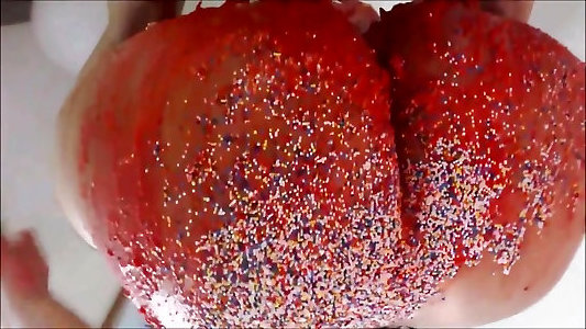 sucré-doux gras dodue avec des canettes de lait ultra-mignon se masturbant sa fente joufflue