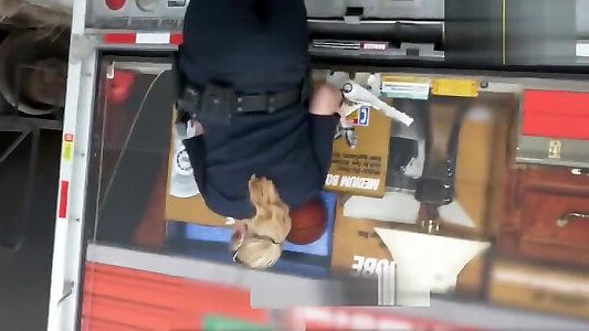 whorish ash-blonde pulvérise dans un camping-car de la police