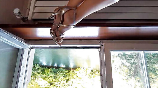 4k 60fps posant dans un string de lingerie en satin étriqué, faisant un clin dœil à mon petit trou du cul en gros plan avec un énorme butin brun étalé
