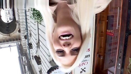 kathys, exhibitionniste blonde aux cendres, descend du concombre public et baise-a-thon hardcore
