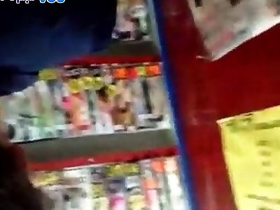 moi dans ma courte mini-jupe laiteuse & amp; cul japonais montrant dans un centre commercial & amp; walmart
