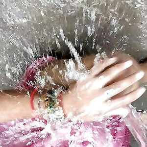 femme de maison indienne se baignant dehors avec du sexe
