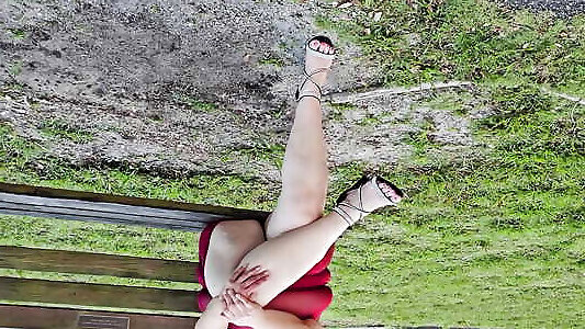 fente sous une brève minijupe sans sous-vêtements dans le parc. pot de miel nu en gros plan. pas de culotte. regarde sous la robe dété. shor