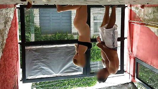 bosse risquée sur un balcon public avec des gens qui lorgnent-projectsexdiary