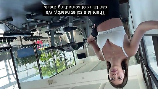superbe jupe en tenue de fitness qui urine dans la salle de repos