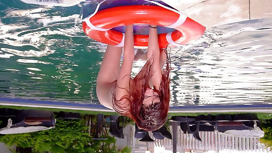 nice rousse ne dérange pas de se masturber sur lanneau de natation
