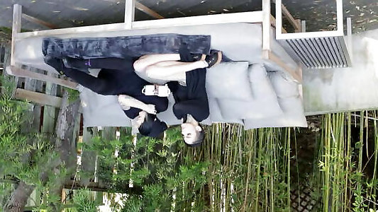 une marionnette sexy se fait attacher et aveugler tout en se faisant plaisir