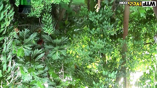 une dame asiatique chaleureuse exhibe et se fait humper en plein air